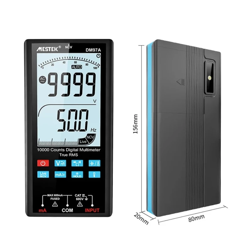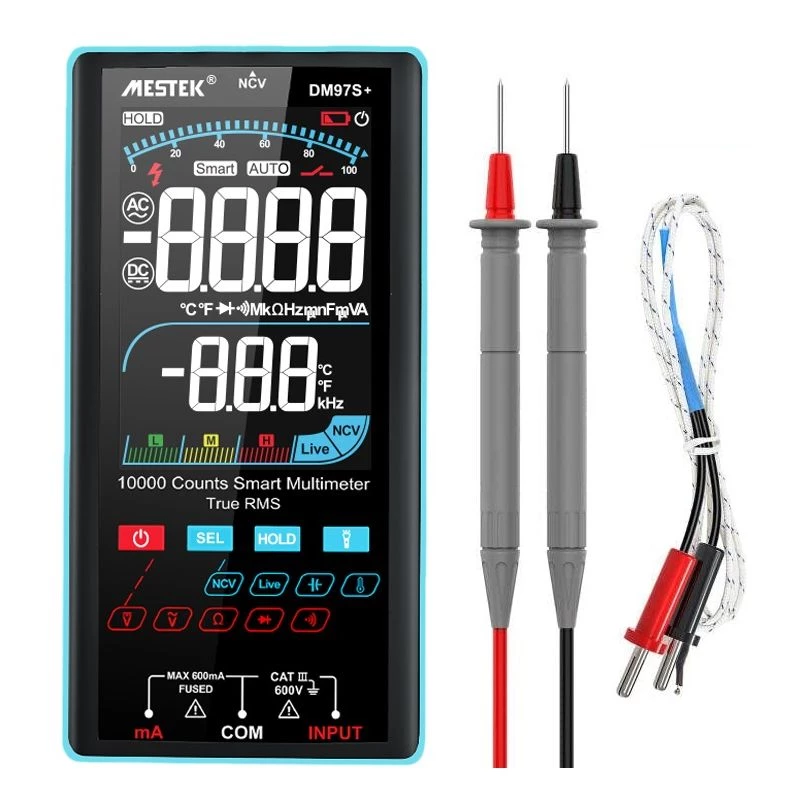 مولتیمتر هوشمند دیجیتال مستک مدل +DM97S با طراحی مدرن و قابلیتهای پیشرفته، ابزار مناسبی برای اندازهگیری دقیق و قابل اعتماد در حوزههای مختلف الکترونیکی و برقی است.
