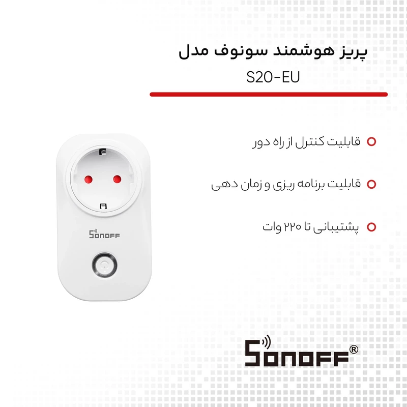 خرید آنلاین پریز هوشمند سونوف مدل S20-EU از فروشگاه ما با بهترین قیمت و ضمانت کیفیت. همین حالا سفارش دهید و کنترل هوشمند وسایل برقی خود را تجربه کنید!